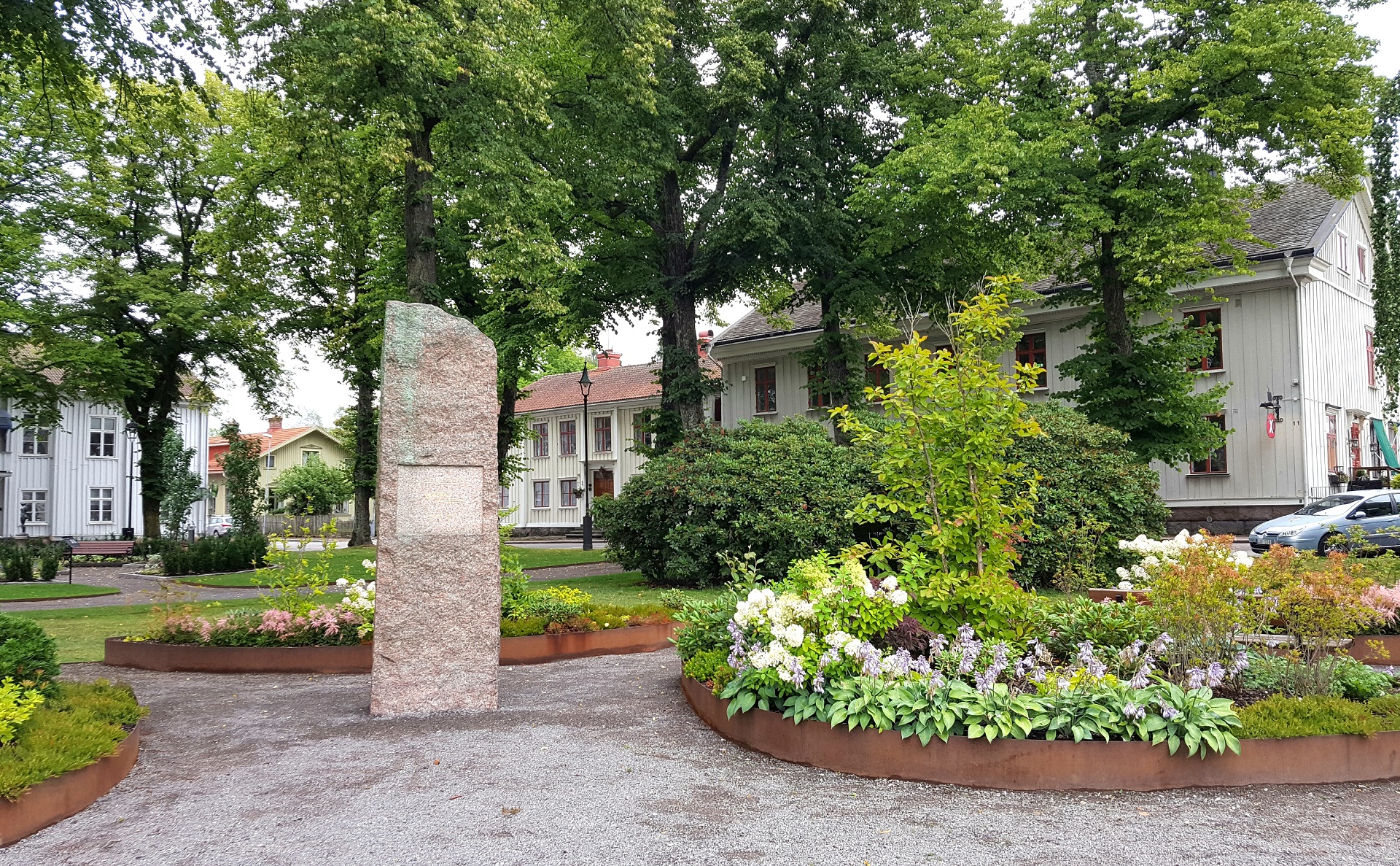 2. Gamla Staden - Stadsdelen öster om ån kallar vi i Åmål för Gamla Staden. Området undgick den stora branden 1901 och har fått behålla sin genuina prägel av gammal stadsmiljö. Gamla Kyrkan, från 1600-talet, ligger i den östra delen av området, på den plats där Åmåls första kyrka en gång legat. Plantaget och byggnaderna runt parken är en av landets bäst bevarade 1700-talsmiljöer. Med hjälp av vår folder, som du kan hämta på Turistbyrån eller Biblioteket, kan du göra en egen stadsvandring bland de gamla husen.