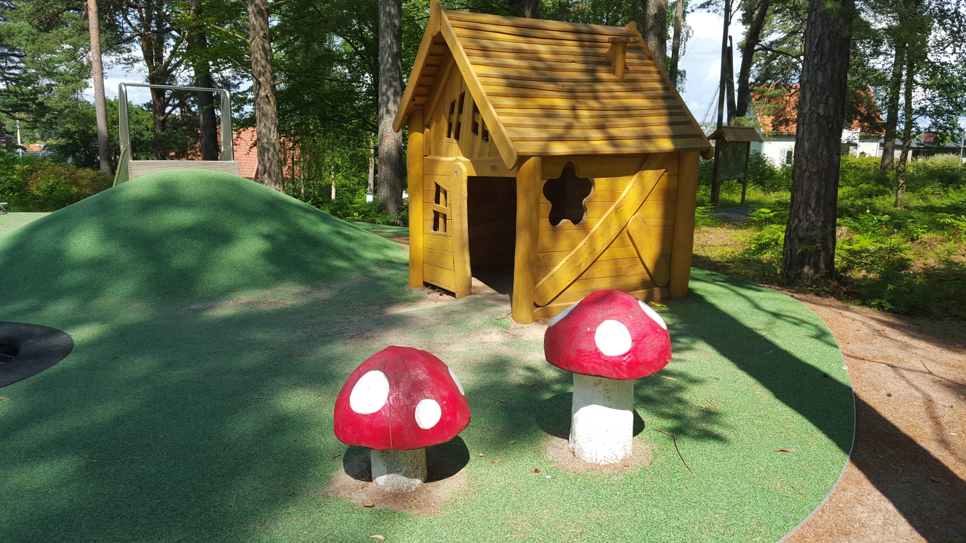 Aktivitets- och naturområde vid Vänerns strand med lek, bad och härliga promenader. Klappa björnen på lekparken!