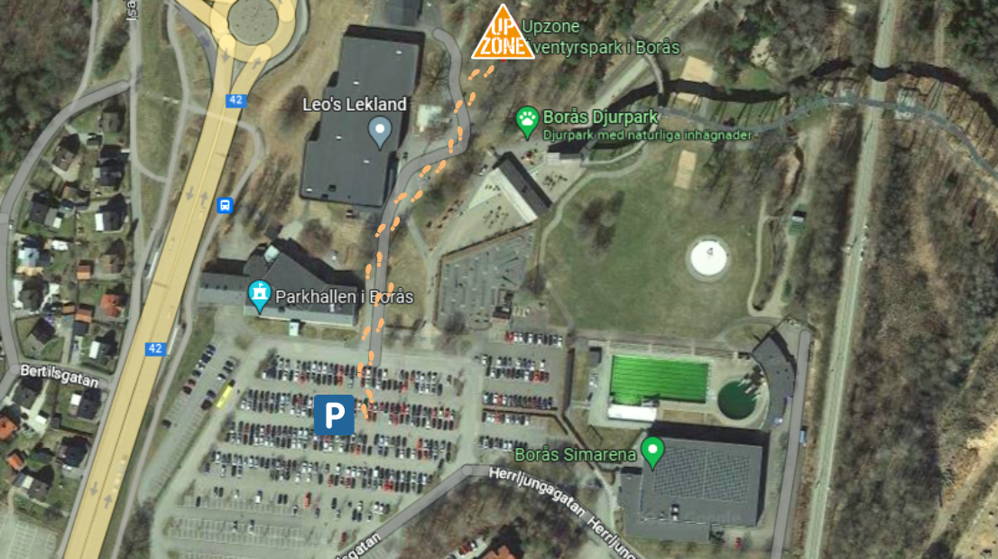 I Upzone adventurepark i Borås kan I komme højt op i de fire klatrebaner i trætoppene. Op til 11 meter oppe kravler I rundt i net, passerer balancebomme, svinger jer frem – og suser gennem luften i en svævebane. Banerne har forskellige sværhedsgrader, så det er muligt at begynde allerede, når man er stor nok til at få en sele om livet og kan finde ud af sikre sig selv med karabinerne. Pulsen kommer op, adrenalinen pumper – og selvtilliden vokser i takt med, at I kommer rundt på banen.