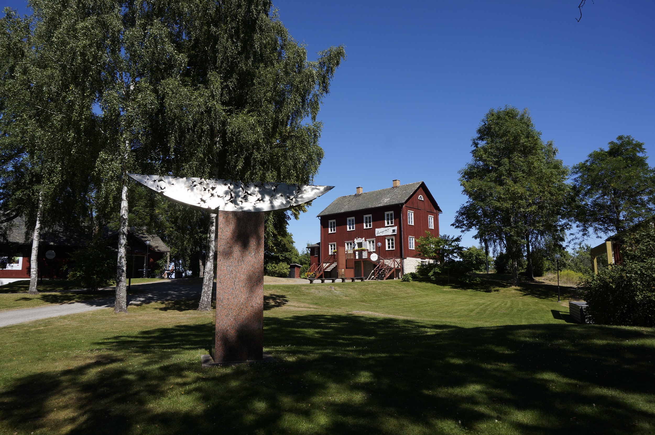 I den gamla smedjan huserar det man i Frankrike kallar en bistro. Bakverk, stenugnsbakat bröd och gott om plats på uteserveringen i skulpturparken.