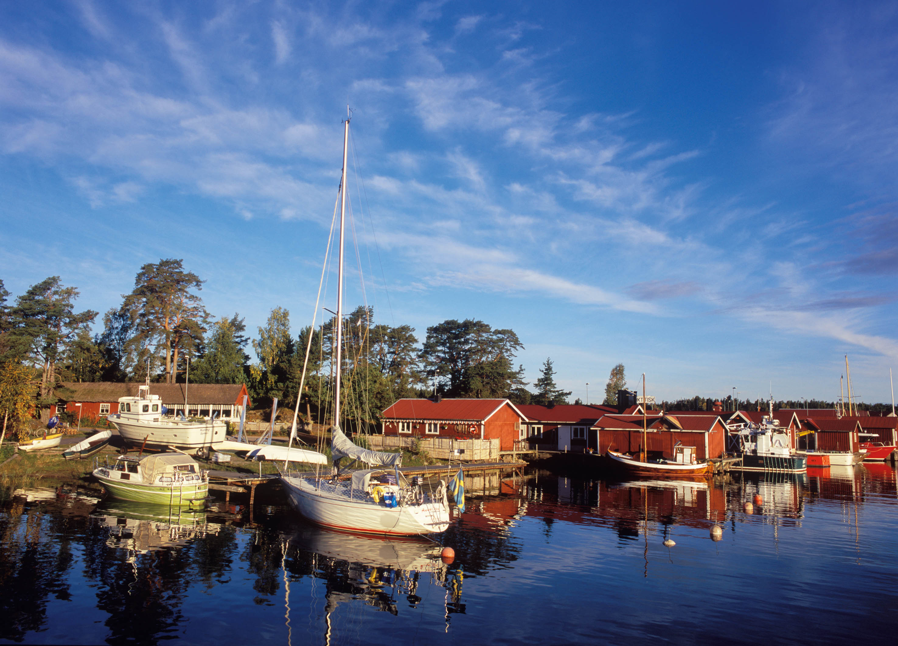 Spiken ist einer der grössten Binnenseefischerhäfen Europas – im Sommer herrscht hier reges Treiben. Lokales Kunsthandwerk, Delikatessen und frisch geräucherter Fisch gehören hier unter anderem zum Angebot.