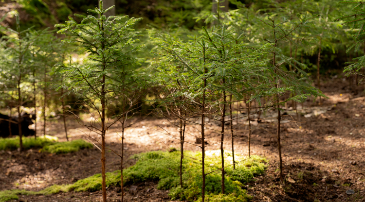 In addition to my role as curator and project manager for "Songs from the Woods", I also had the opportunity to explore my own place and make my own contribution to it. I found a field of spruce shoots. They became my material. By thinning out, I finally found groups of spruces that spoke to me. Mini-landscapes emerged and islands were formed. Moss islands, bark islands, spruce islands. Islands that float around and touch each other, sometimes a lot and sometimes a little. - Annelie Wallin.