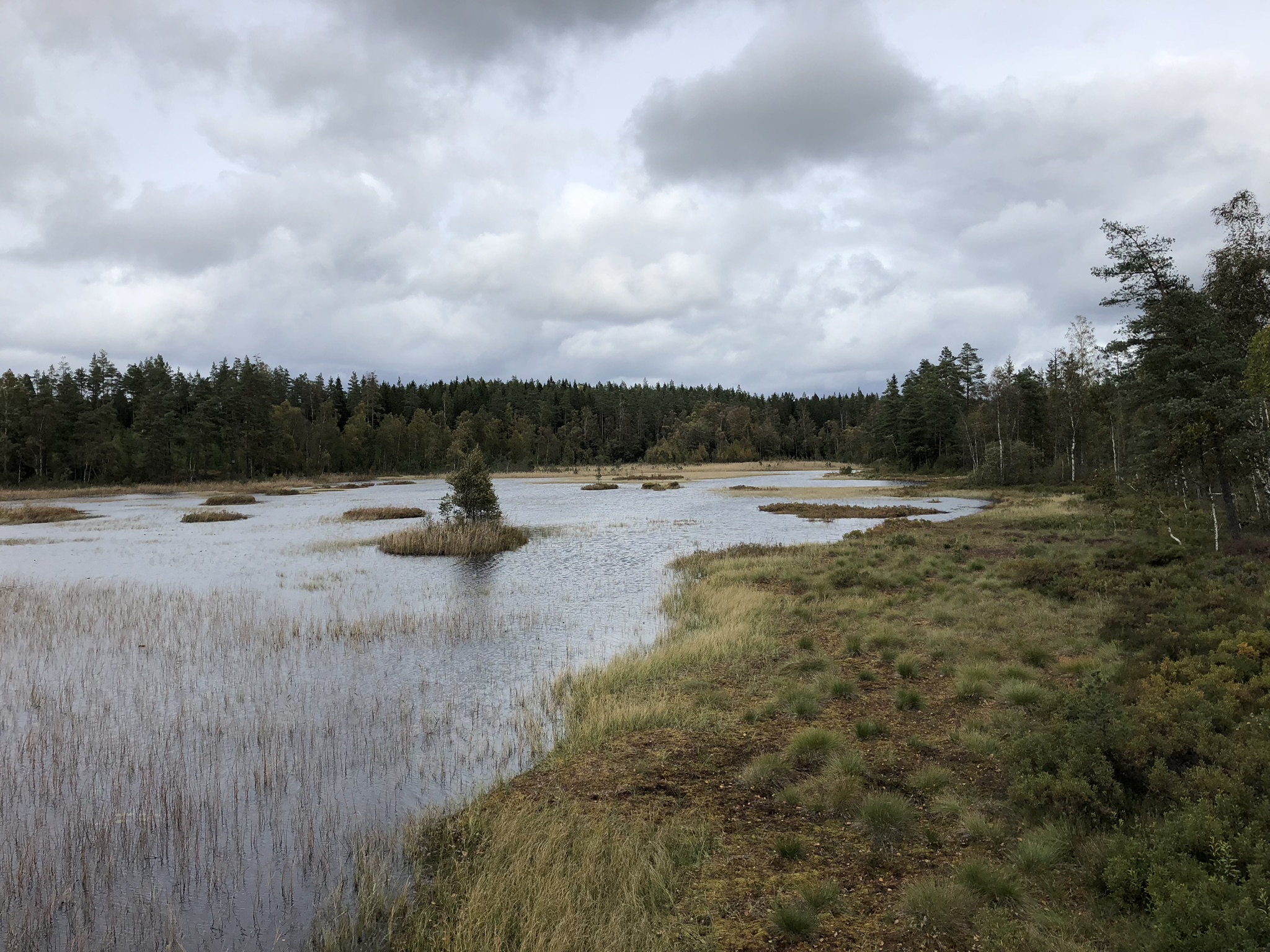 Ici, à l'extrémité sud-ouest du Dalsland, il y a de nombreux lacs. Cependant, vous commencerez par traverser l'une des plus belles zones humides du Västra Götaland, Öjemossen. Vous pourrez la voir en regardant sur la gauche.