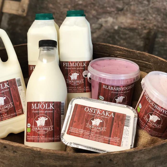 Från gårdens 45 mjölkkor förädlas produkter i det egna gårdsmejeriet. I gårdsbutiken kan man förutom mjölk hitta naturell och smaksatt filmjölk och yoghurt. Ibland finns även lagrade och färska ostar, brynost, ostkaka samt glass som tillverkats på mjölken från gården.