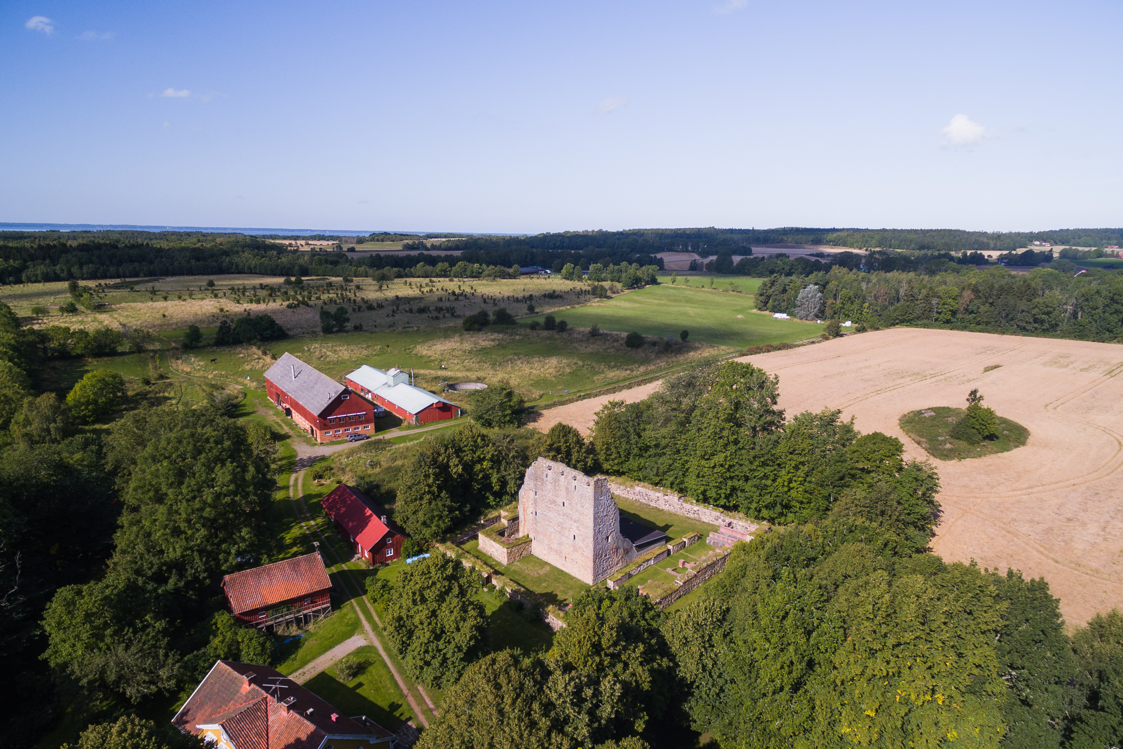 Efter kärnhuset uppfördes intill detta ett annat hus, kallat "kasematten". Det var ca 10x7 meter, som i sin nuvarande omgivning ser mycket egendomligt ut. Murarna är mycket tjocka och den undre delen har på tre sidor något som ser ut som skottgluggar, men knappast kan ha haft den funktionen under särskilt lång tid, de ligger alldeles för nära marken och ger inte mer än några meters skottvidd, utanför ligger ju ringmuren, enda förklaringen är nog att muren tillhörde ett senare byggnadsskede. Från huset leder en portal in i kärnhusets hall. I huset som ligger norr om det förra finns en ypperlig brunn och några meter ytterligare i nordlig riktning finns en varmluftsugn från vilken kanaler måste ha lett in varmluft i kärnhuset. Kärnhuset är nästan kvadratiskt med 16 meters sida och ungefär lika högt. Materialet är till stor del sandsten, och särskilt i sina övre delar svårt brännskadat.