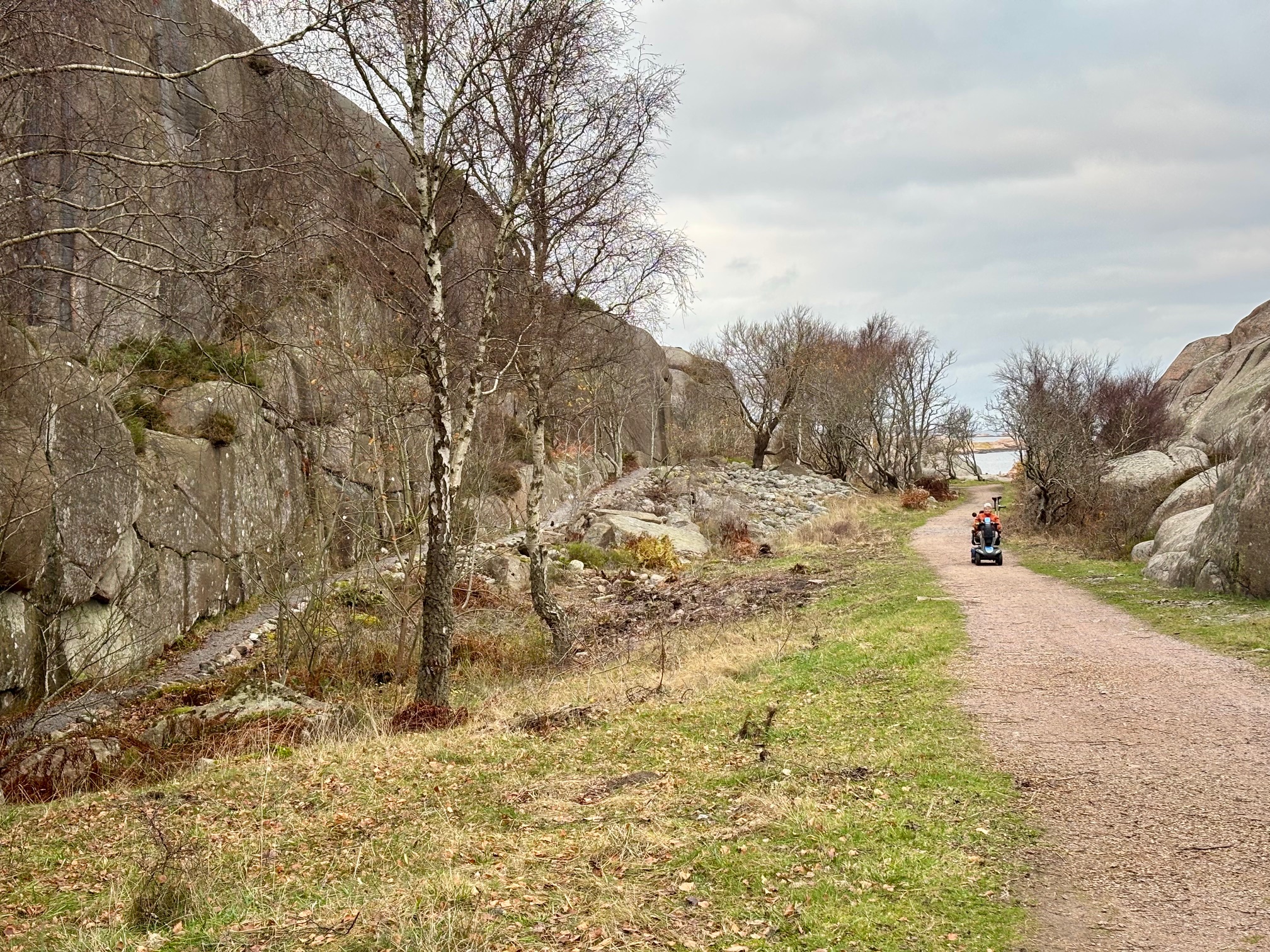 Från Pinnevik kan man gå grusstigen som är tillgänglighetsanpassad till Munkeviks mule. Där finns det en pittoresk liten hamn som är omringad av mjukslipade granithällar.