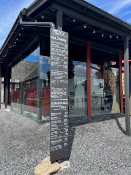 Detta är en sommarrestaurang där matlagning och servering sker främst utomhus. Vi har även ett par sittplatser inne på logen för de som vill ha tak över huvudet. Men glöm inte kläder efter väder.