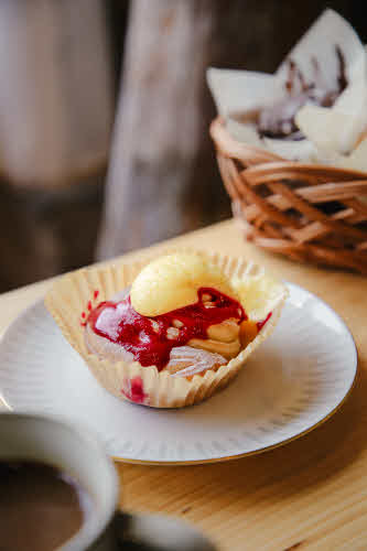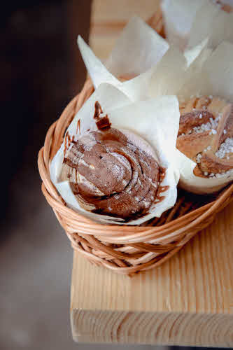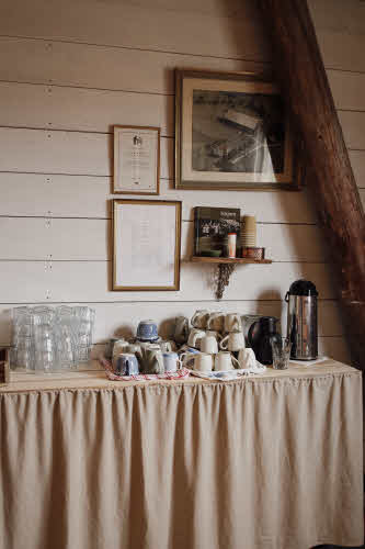 Här kan du välja att köpa med dig bröd och bullar hem eller sitta ner i vårt ombyggda stall.