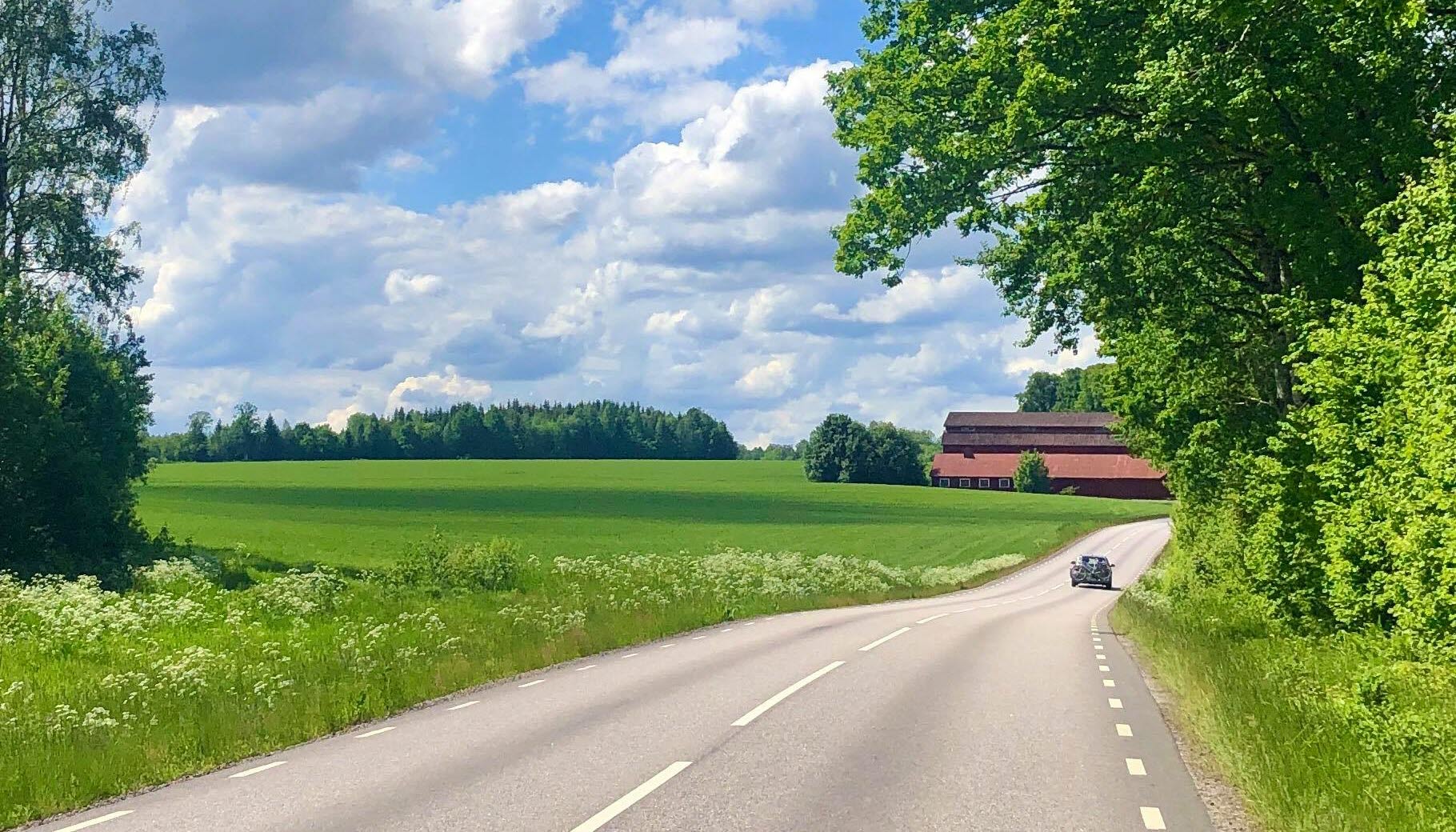 Lite trafikkerte landeveier sør for Falköping i Västergötland. Runden går forbi piknikplassen Basta kvarn i Blidsberg.