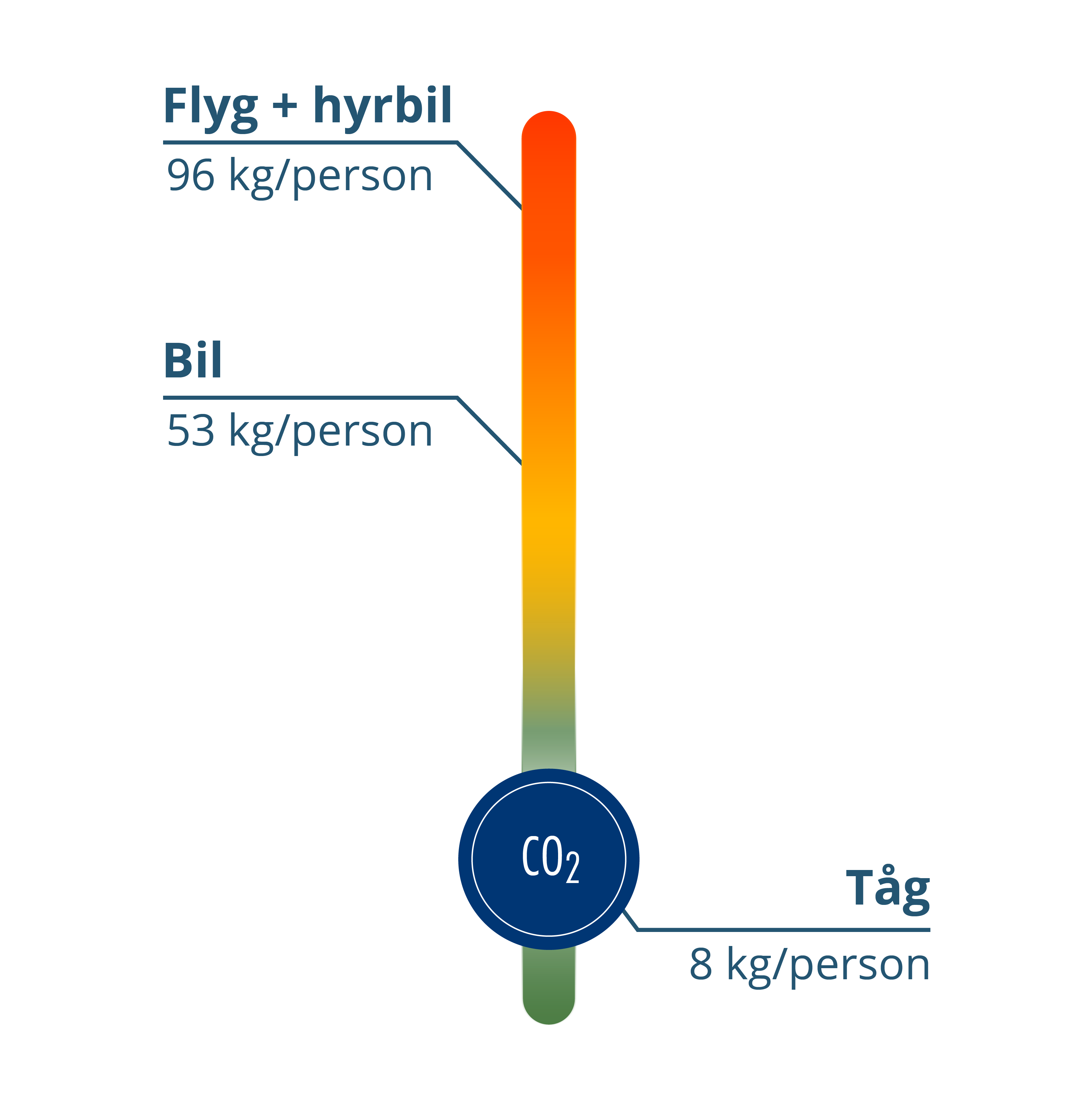 Beräkningarna inkluderar transport tur och retur från Stockholm för två personer, samt boende. Resultatet redovisas i figuren per person.