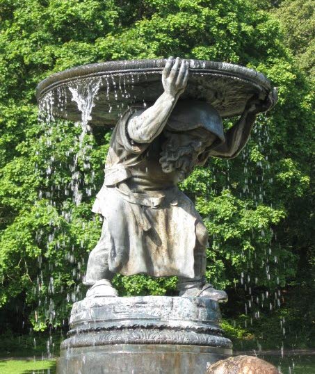 - Spana in den rosprydda fontänen i slottsträdgården.