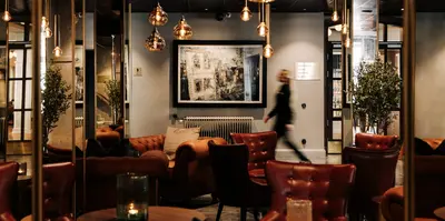 I receptionen och baren skapar vi en levande mötesplats med äkta fredagsfeeling – avslappnad, social och fylld av smak.