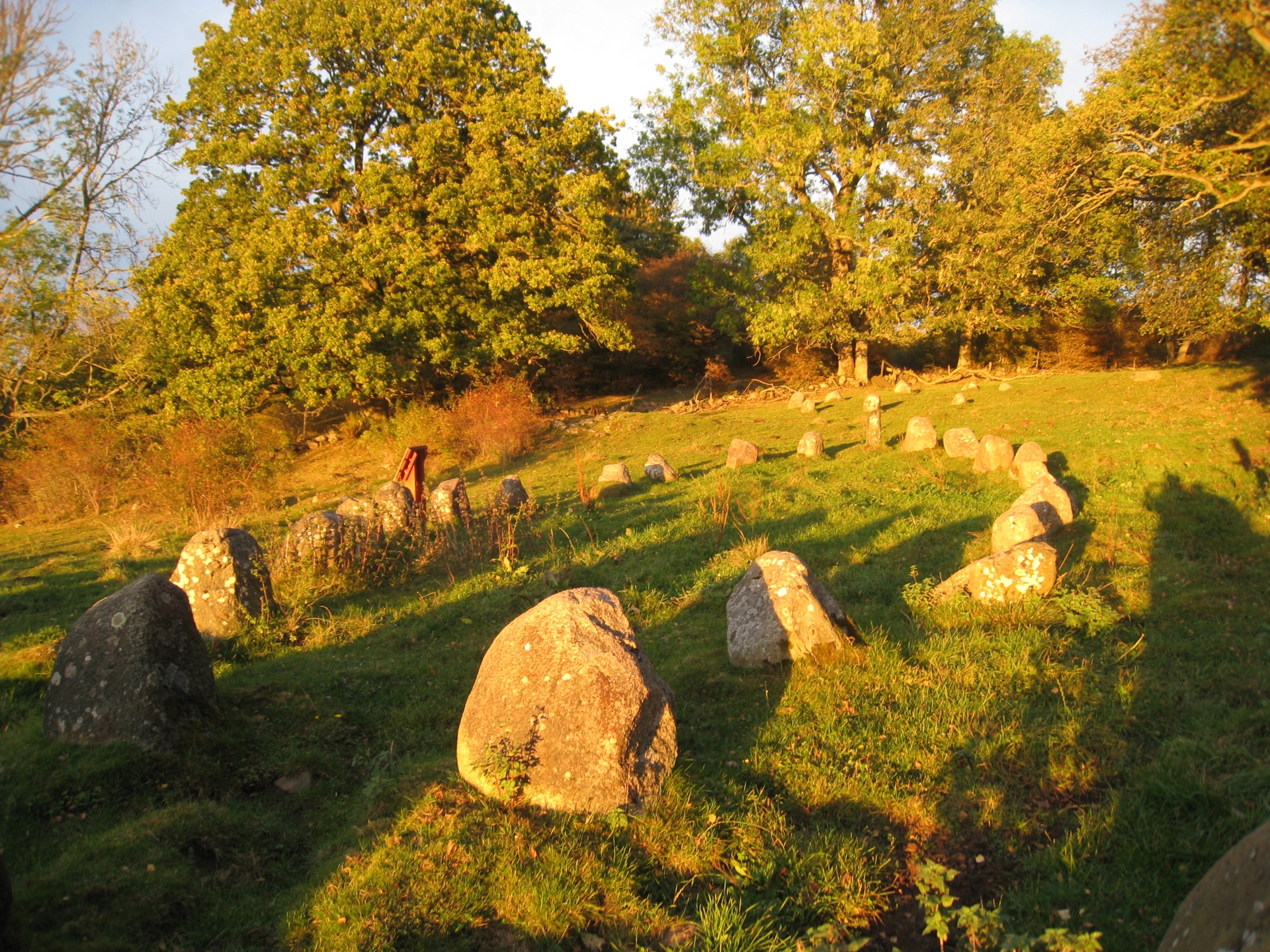 Amundtorps gravfält på Billingens sluttning består av en välbevarad skeppssättning, domarringar och olika typer av stensättningar.
