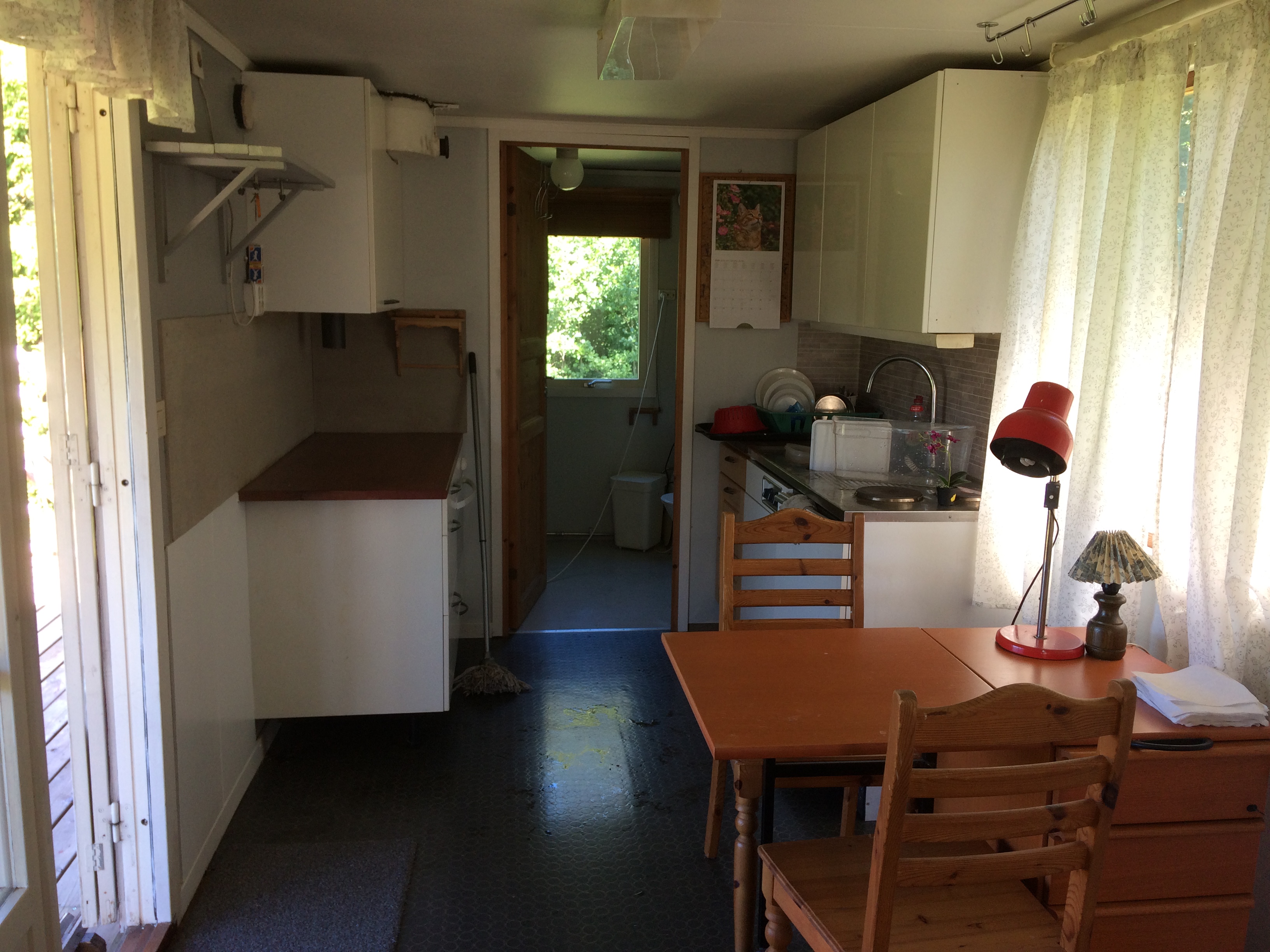 2 kokplattor, ugn, mikro, vattenkokare, brödrost och övrig köksutrustning finns. Utedass i anslutning till altanen. Dusch och tvättmaskin. Öppen altan med tak.