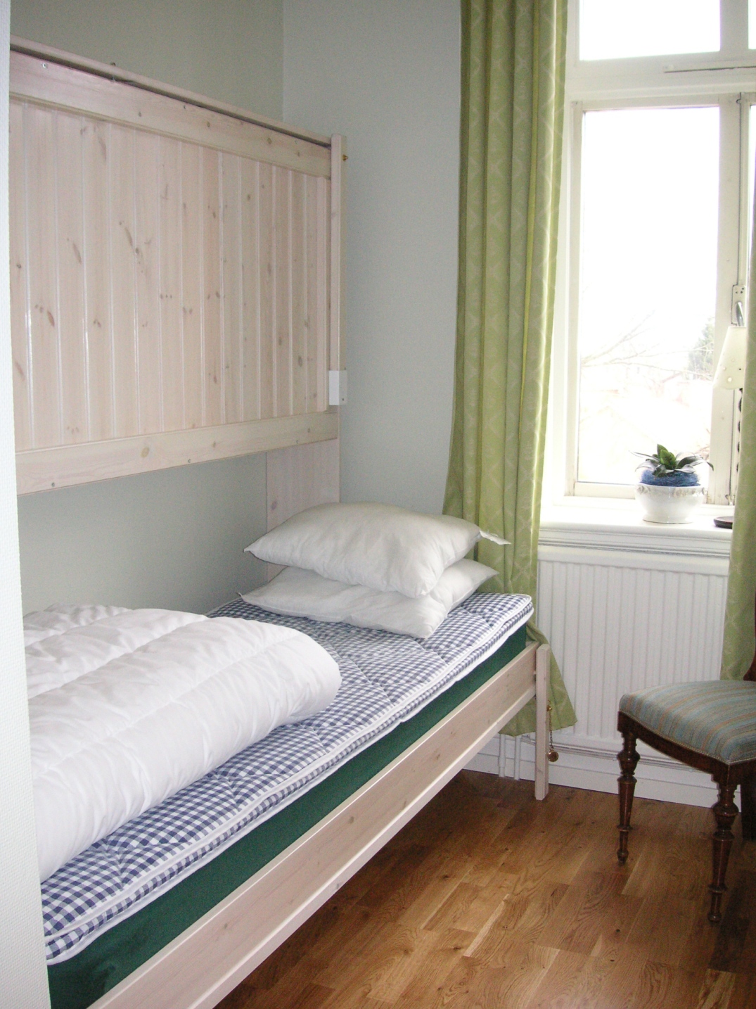Vandrarhemmet består av flera rum i den charmiga sekelskiftsvillan och några ute i det intilliggande annexet. Samtliga har dusch, toalett och stora härliga fönster.