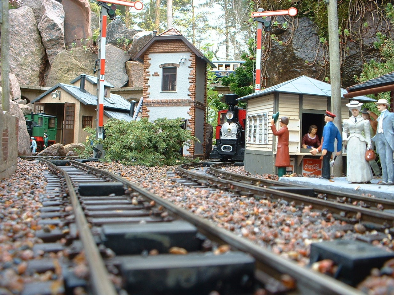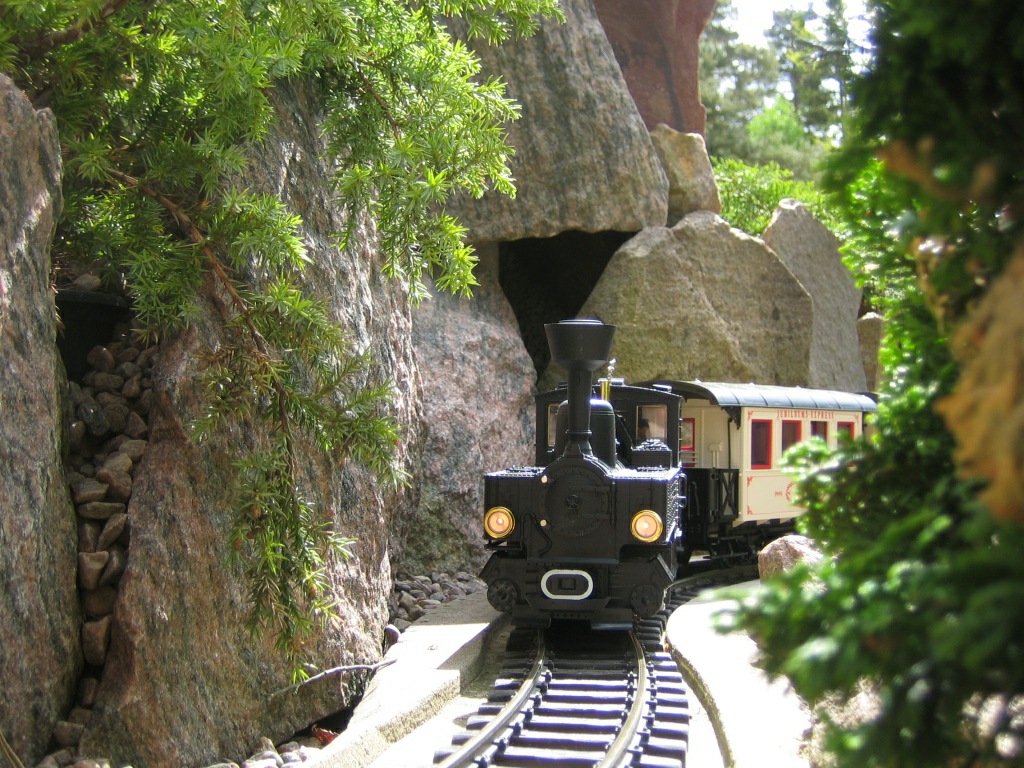När du går in i trädgården möts du av en helt annan värld. Porlande vatten, hus i miniatyr och ett alplandskap som breder ut sig. Genom detta landskap ringlar en miniatyrjärnväg fram och idag är den en utav Sveriges största trädgårdsjärnvägar i skala 2:22,5. Här finns mycket att titta på, så ta dig tid att undersöka varje liten vinkel och vrå! En del av järnvägen är fortfarande under uppbyggnad och Benny har lagt över 8000 arbetstimmar på att få järnvägen att se ut som den gör idag.
