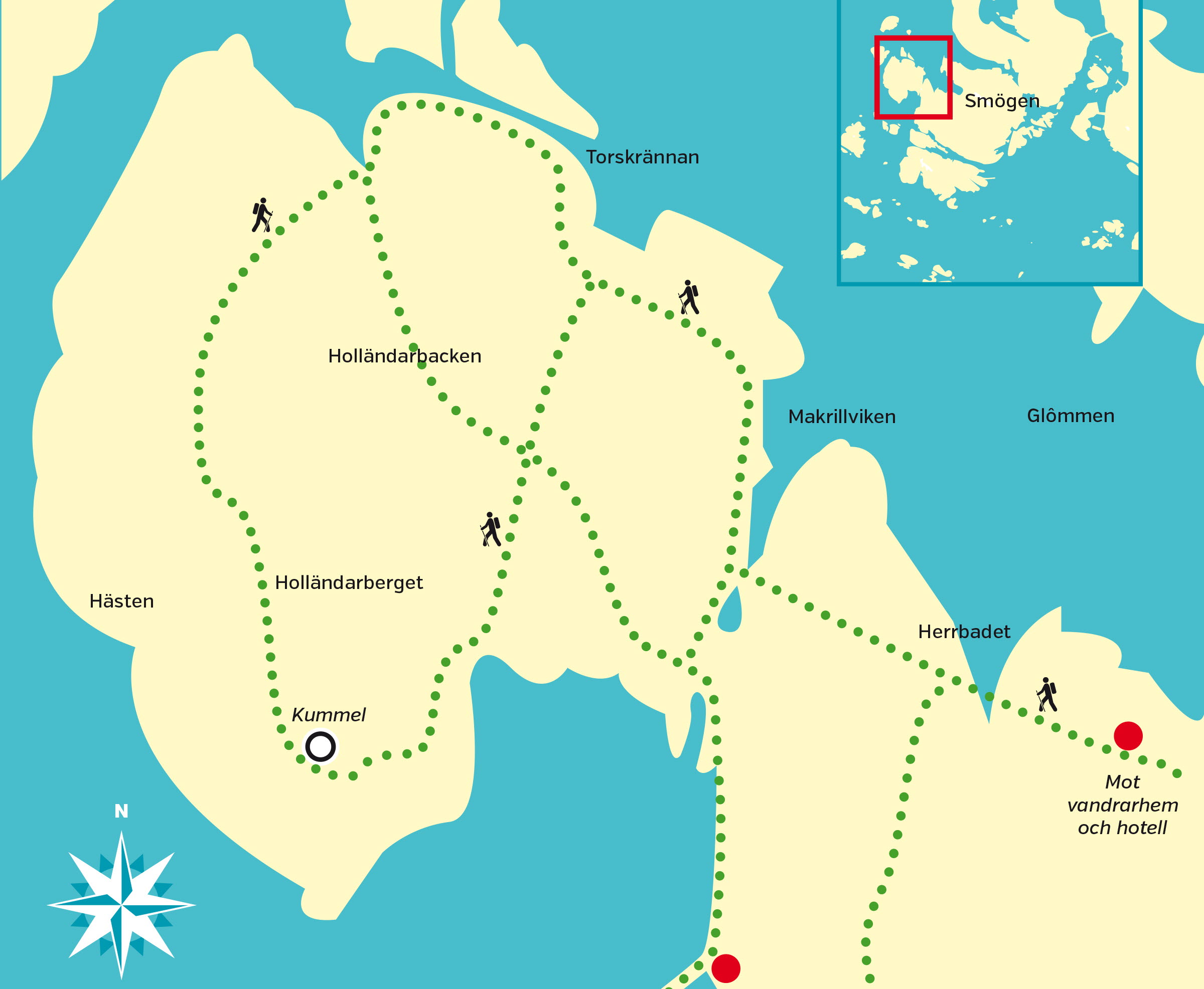 Smögen är en ö med många möjligheter. Outdooraktiviteter finns det hur många som helst att välja bland. Fiske, dykning, paddla kajak, klättra och självklart vandra. Kommunen och eldsjälarna i Smögens Öråd har iordningställt flera fina vandringsleder på ön, det är bara att åka dit och njuta av dem.