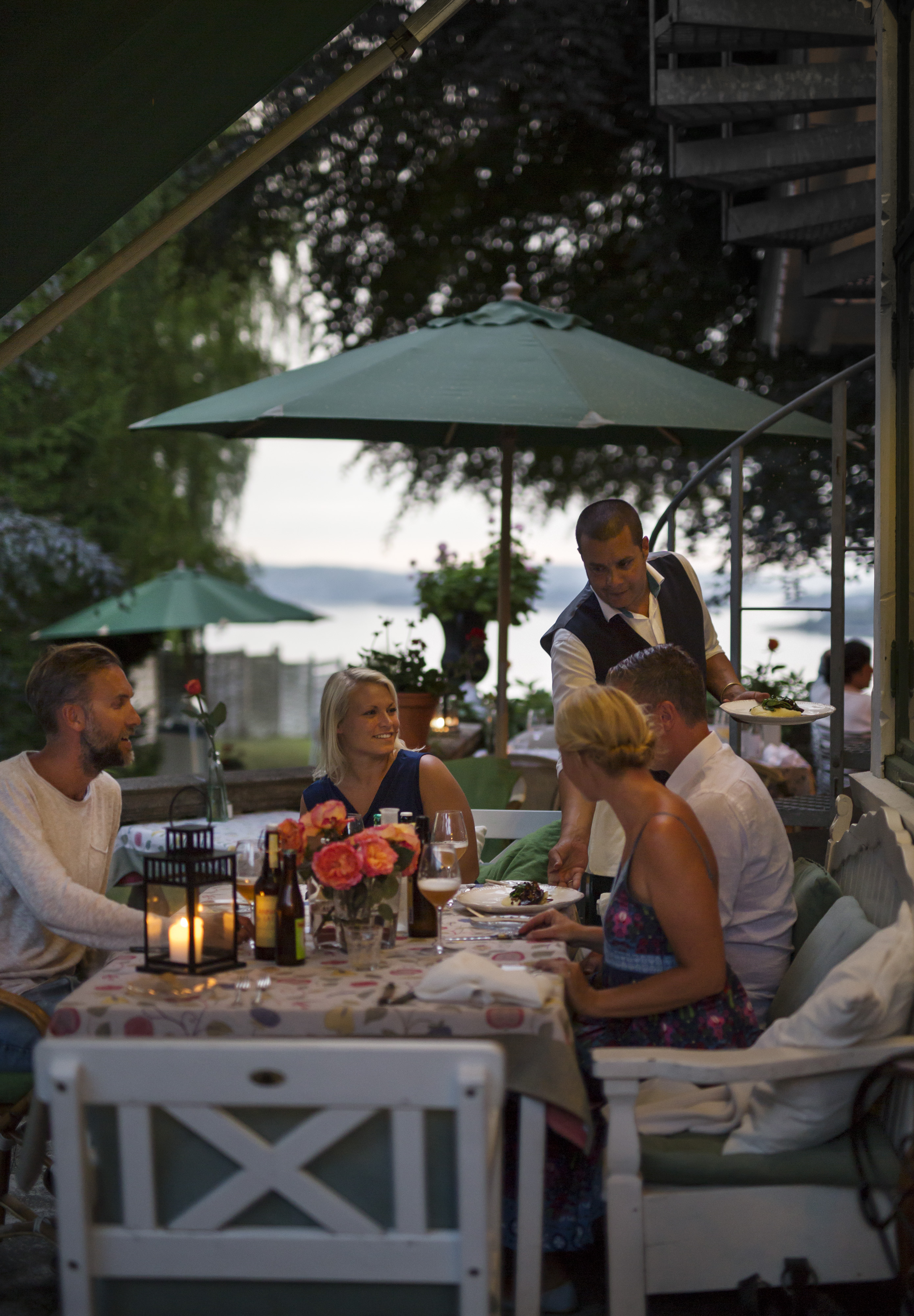 I restaurangen kan du njuta av bra mat. Villa Sjötorp använder omsorgsfullt utvalda råvaror, till största del ekologiska och hämtade från närliggande Bohuslän med det saltstänkta havet och Västergötlands bördiga jord, skog och sjöar.