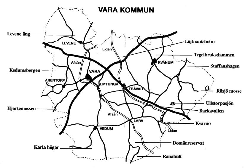 Karta från Vara Naturskyddsförenings broschyr ”Natur i Vara kommun, 1992”.