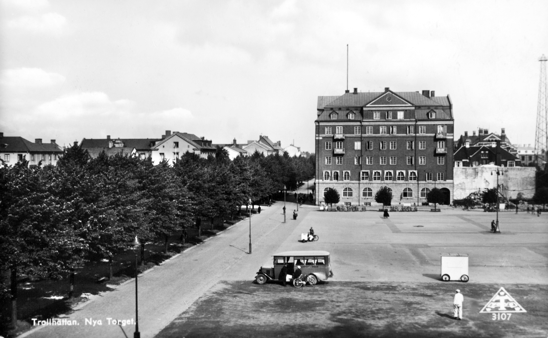 Här fanns först ett gästgiveri som 1869 ersattes av Grand hotell. Detta revs 1913 för att ge rum åt ett stadshus som skulle stå klart när Trollhättan fick stadsrättigheter vilket skedde 1916. Då flyttade också torghandeln från Karl-Johans torg till det nyanlagda Drottningtorget.