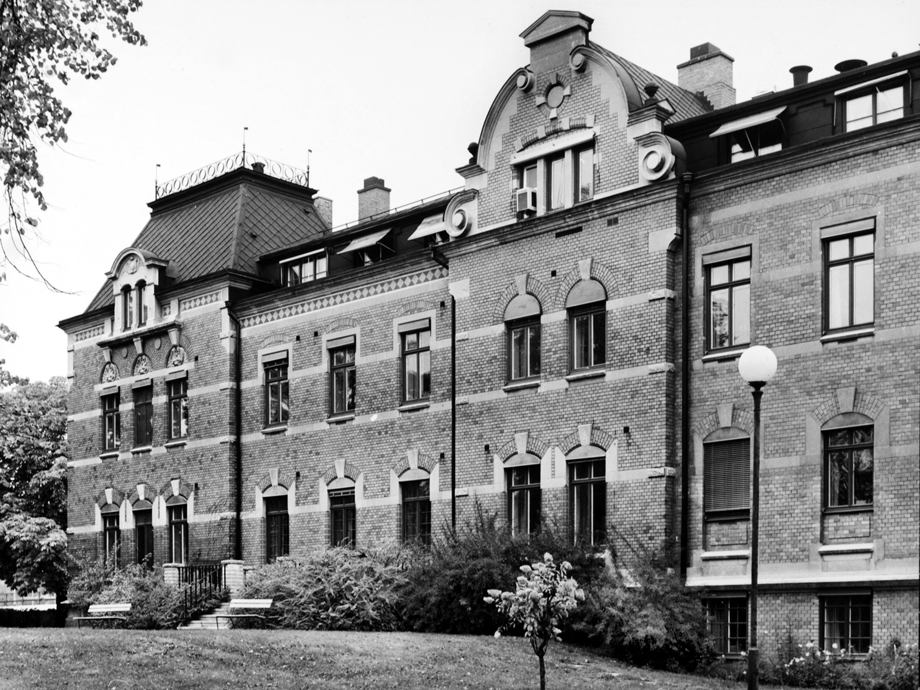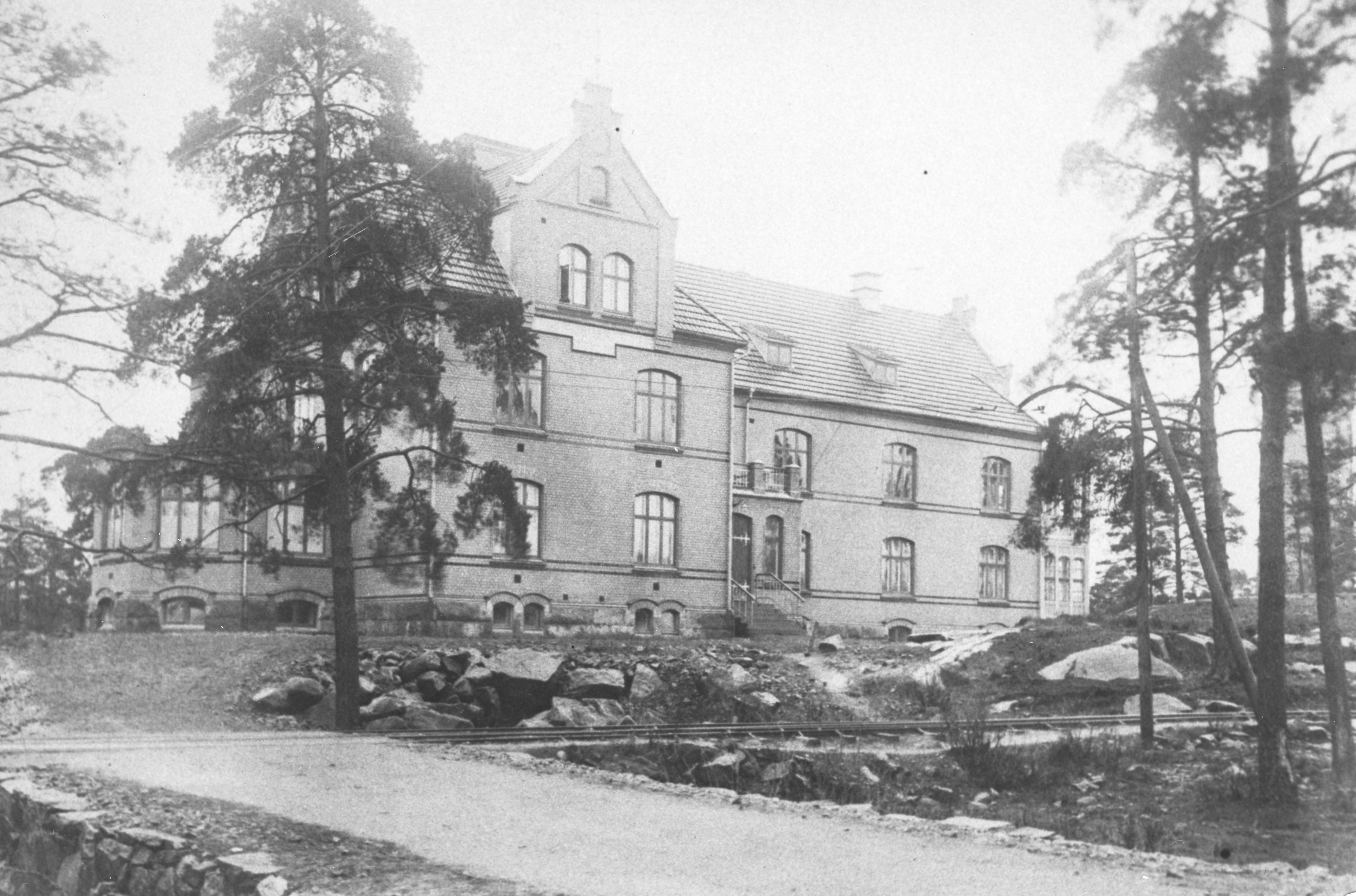 Initiativet och en donation kom från ingenjör E. L. Albert ”till lindring av lidande medmänniskors sjukdom och betryck”. Albert utformade Strömslund, Sveriges första planerade egnahemsområde. Nationalromantisk stil med drag från medeltid och renässans. Arkitekt A. E. Kumlien ritade tillbyggnaden som färdigställdes 1932.