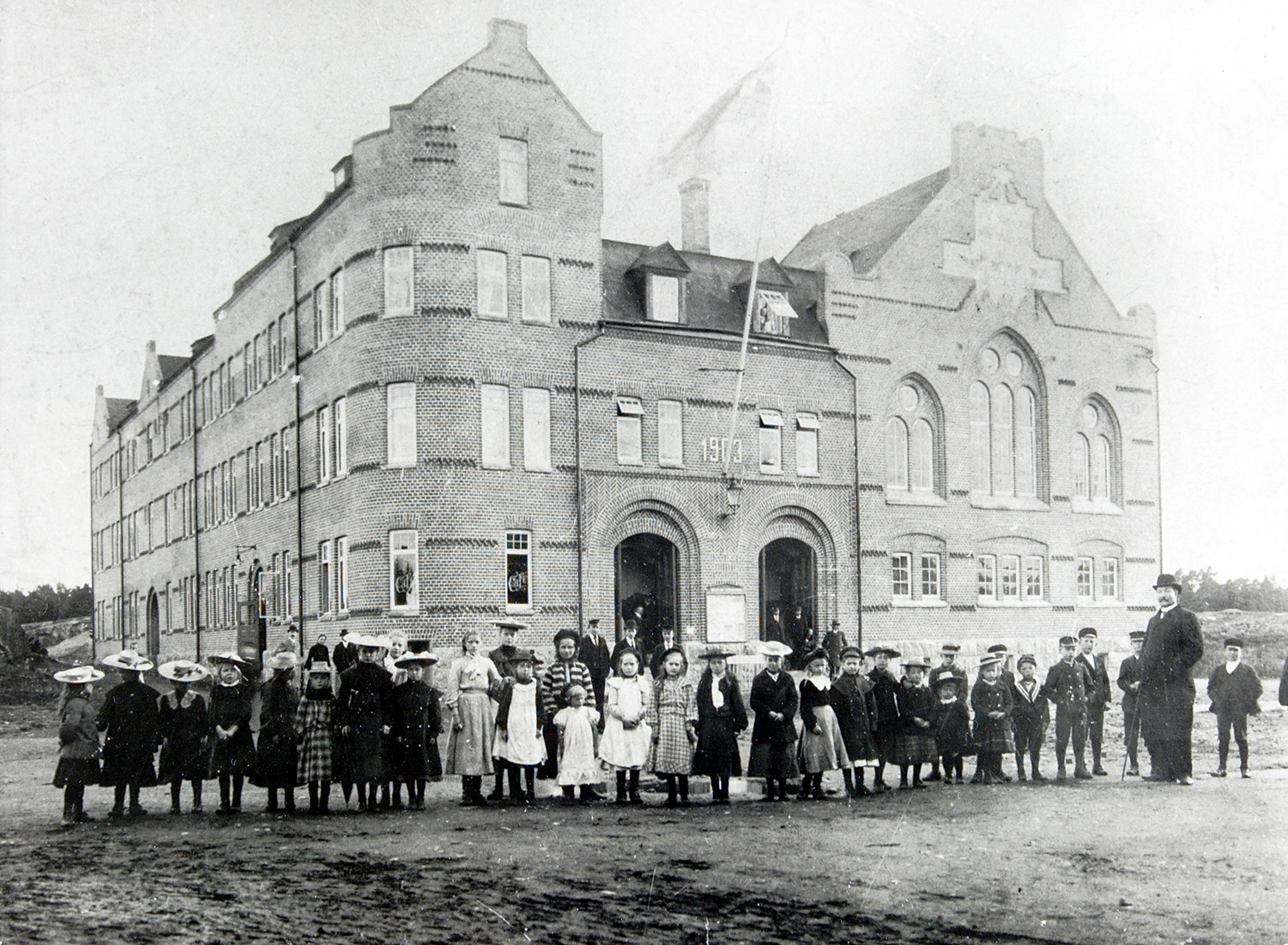 Uppfördes 1908 – 1909 som privatbostad efter ritningar av arkitekt Lars Israel Wahlman som även ritat Tjolöholms slott. Stilen anknyter till rustik nationalromantik med varierade paneler och fönster delade i flera små rutor. Inspirationen kommer från äldre svenska allmogebyggnader. Det så kallade säteritaket var vanligt på herrgårdar i slutet av 1600-talet. De dekorerade cirklarna är ursprungliga.