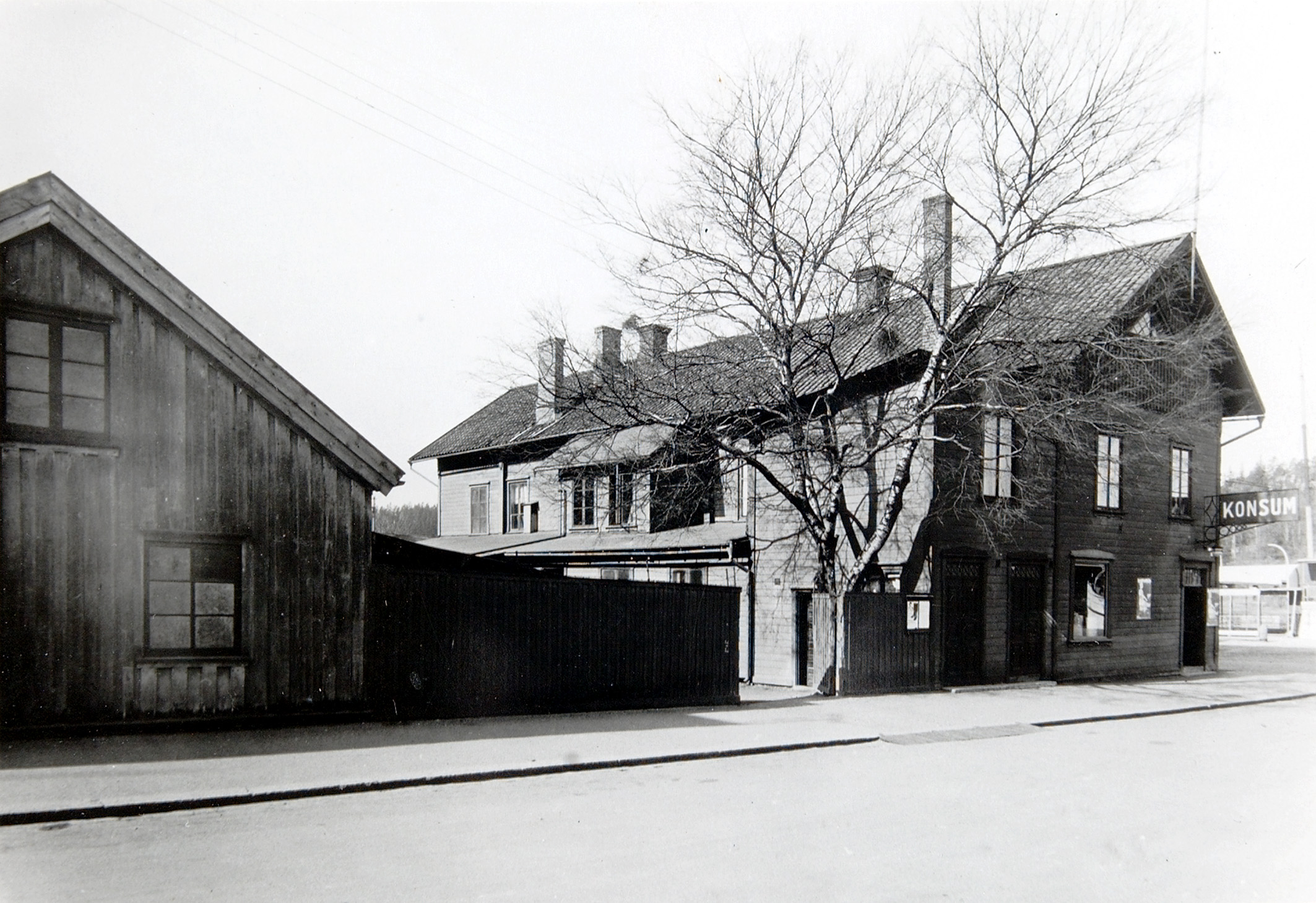 1867 grundades Trollhättans arbetareförening, sprungen ur den framväxande industrialismen. Samma år började föreningen sälja baslivsmedel vilket var början till Sveriges äldsta existerande konsumtionsförening. 1873-1875 uppförde föreningen denna byggnad, delvis på ett befintligt magasin. Bottenvåningen innehöll bland annat handelsbod och bibliotek. På övervåningen finns samlingssalen med scen bevarad. På gården fanns uthus och bodar.