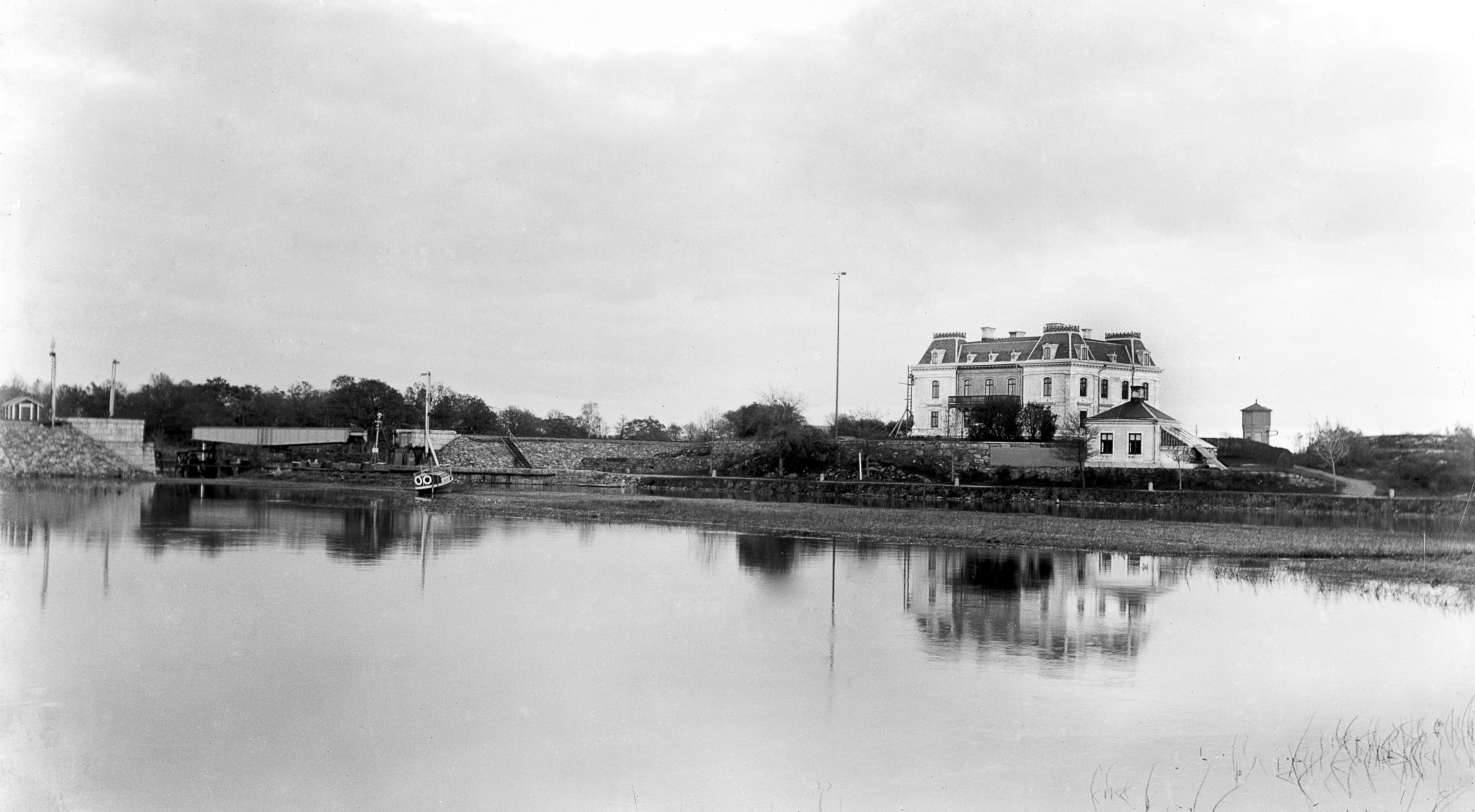 Privatbostad uppförd 1878 – 1880 efter ritningar av arkitekt Adrian Crispin Peterson. Stilen är stramt symmetrisk med drag från äldre byggnadsstilar, vilket är typiskt för mer påkostade byggnader från senare delen av 1800-talet. Byggnaden var modern för sin tid och var bland de första i Sverige som utrustades med centralvärme.