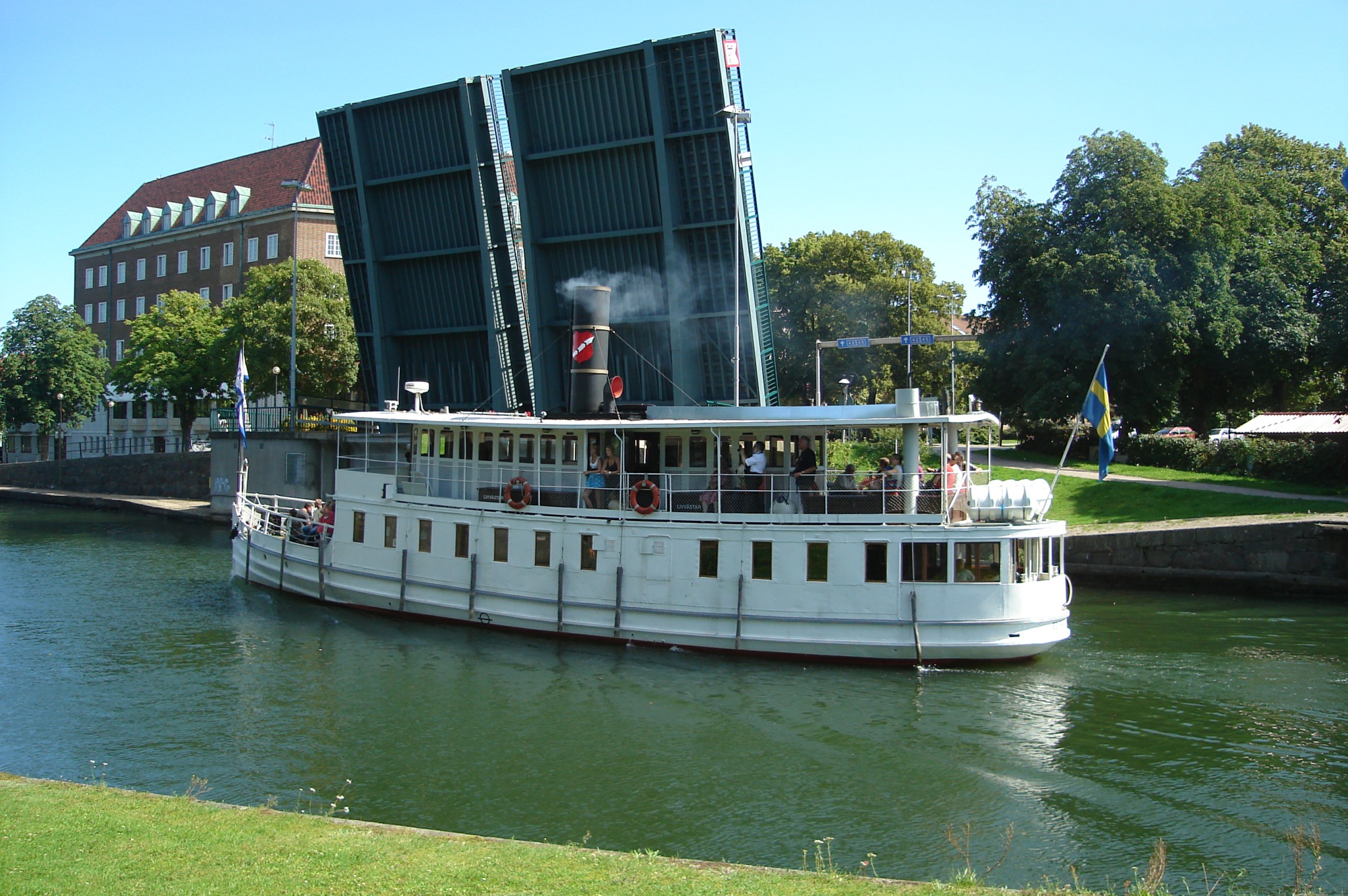 Första slussen mellan Vänern och Göta älv utanför Vänersborg i vacker miljö med ett mysigt sommaröppet slusscafé. I närheten finns också flera mysiga vandring- och cykelvägar.